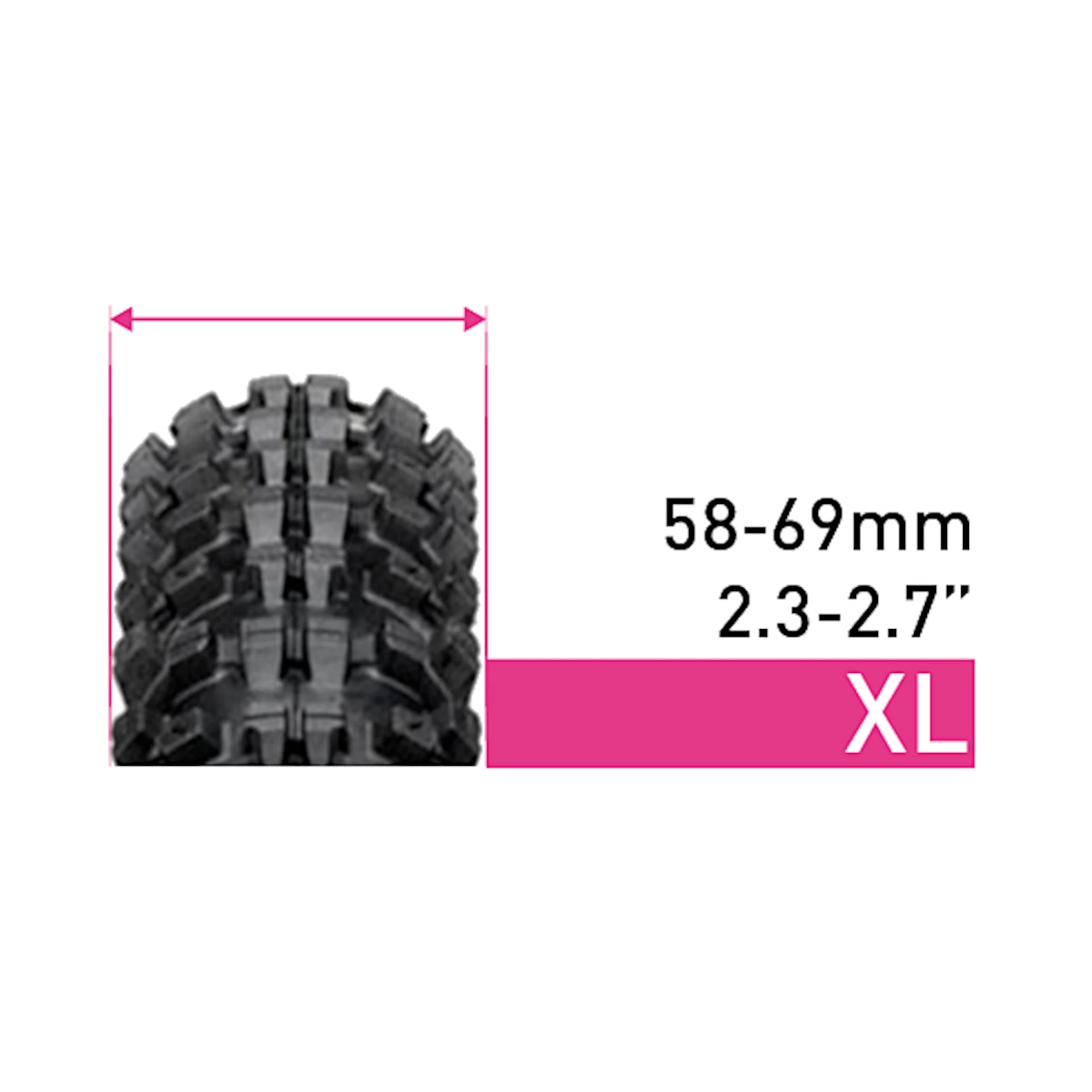• For 58-69 mm wide tyres (2.3-2.7”)