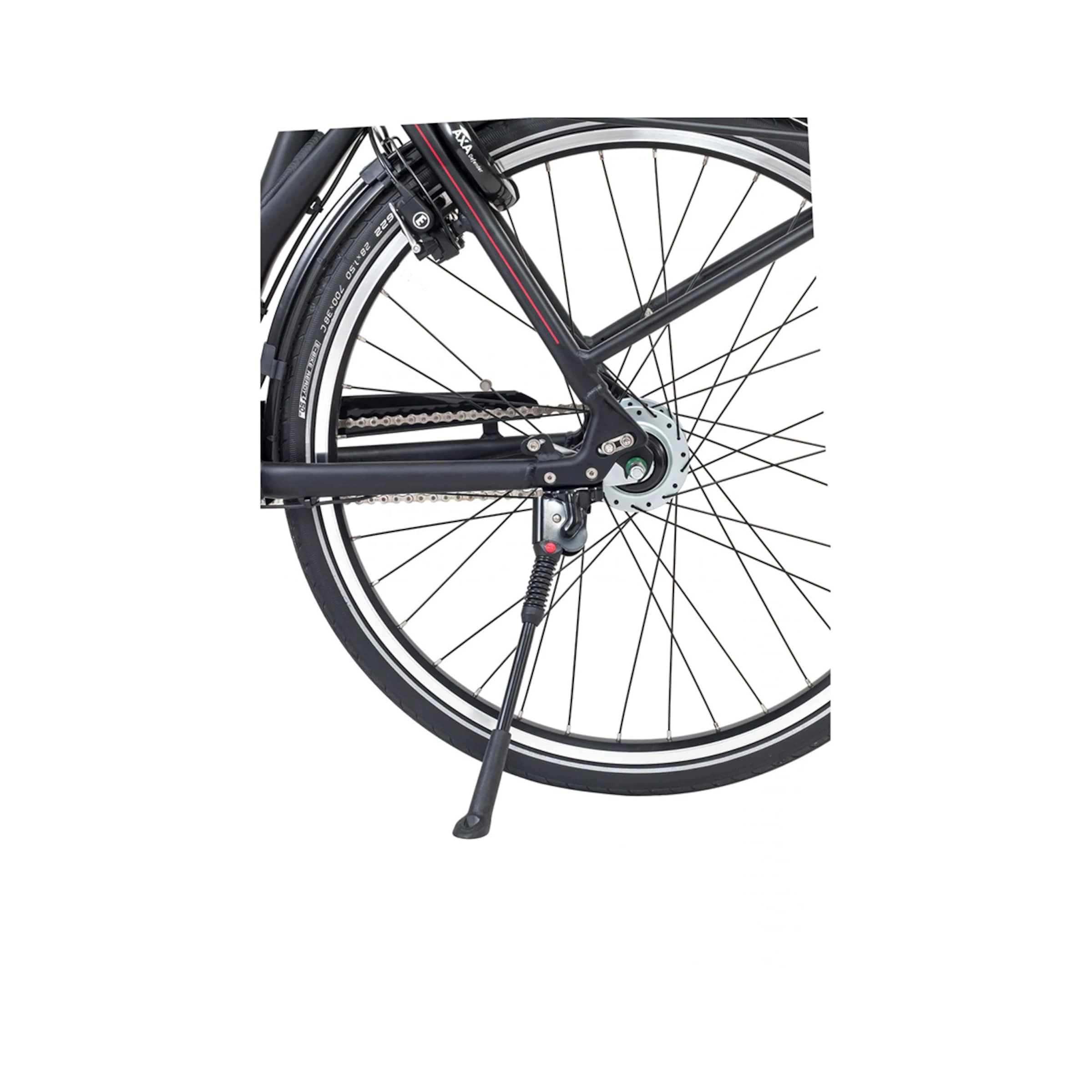 Thus, the centre of gravity is above the robust kickstand that safely carries the load even on softer grounds thanks to a stable connection to the frame – which proves especially advantageous when using hook-on pannier bags or rack mounted e-bike batteries. The abrasion-proof plastic foot reaches up the tube to make the stand adjustable in length without tools. Besides, it protects the sensitive stand tube coating when the proven Hebie spring mechanism folds up. Thanks to the length-adjustable stand tube, the extra-long Fix 40 L rear mount kickstand is suitable for both 28 and 29 inch bikes.