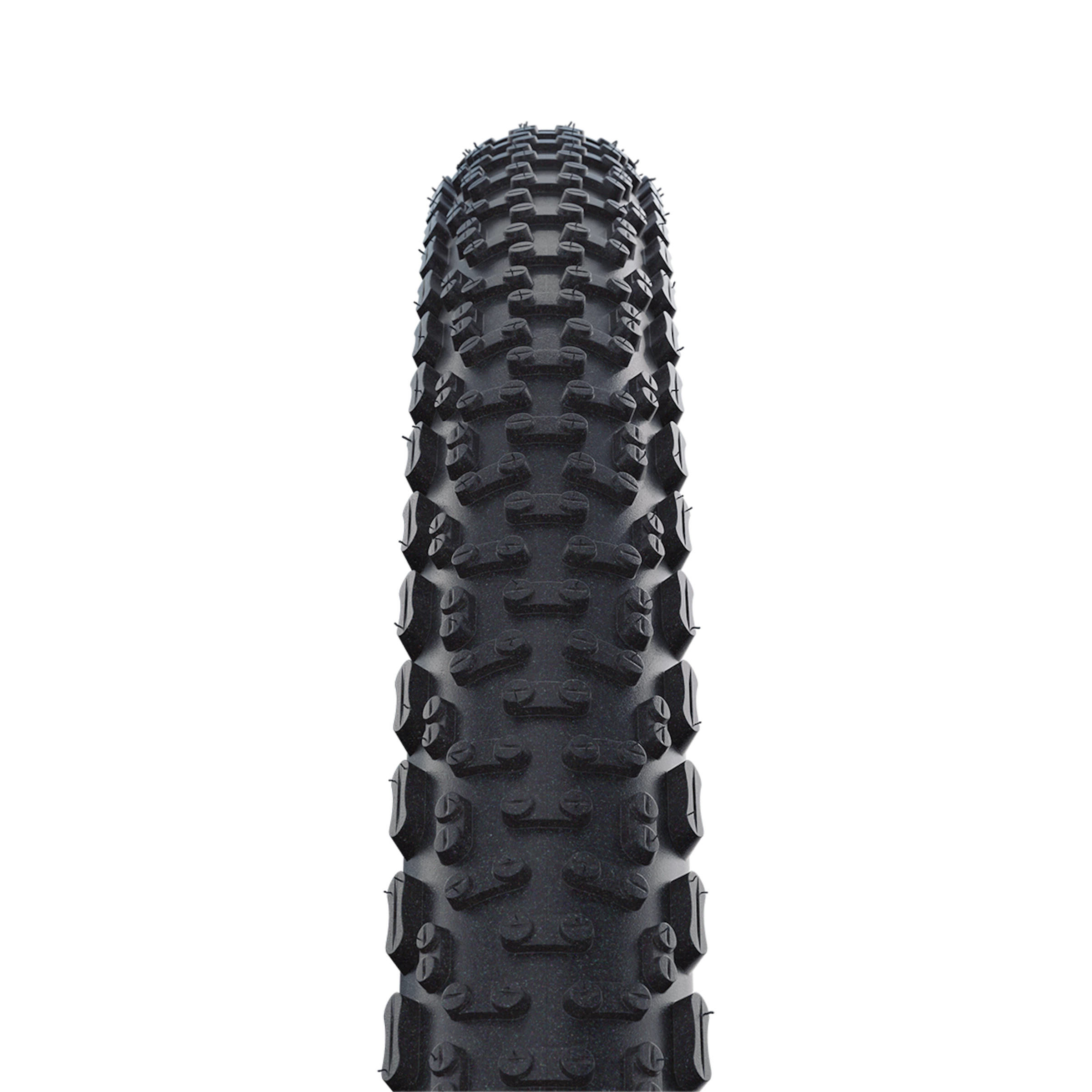 The cassette knobs in the centre of the tyre ensure a good grip and lots of traction, while the robust side knobs offer security on fast, tilted curves.