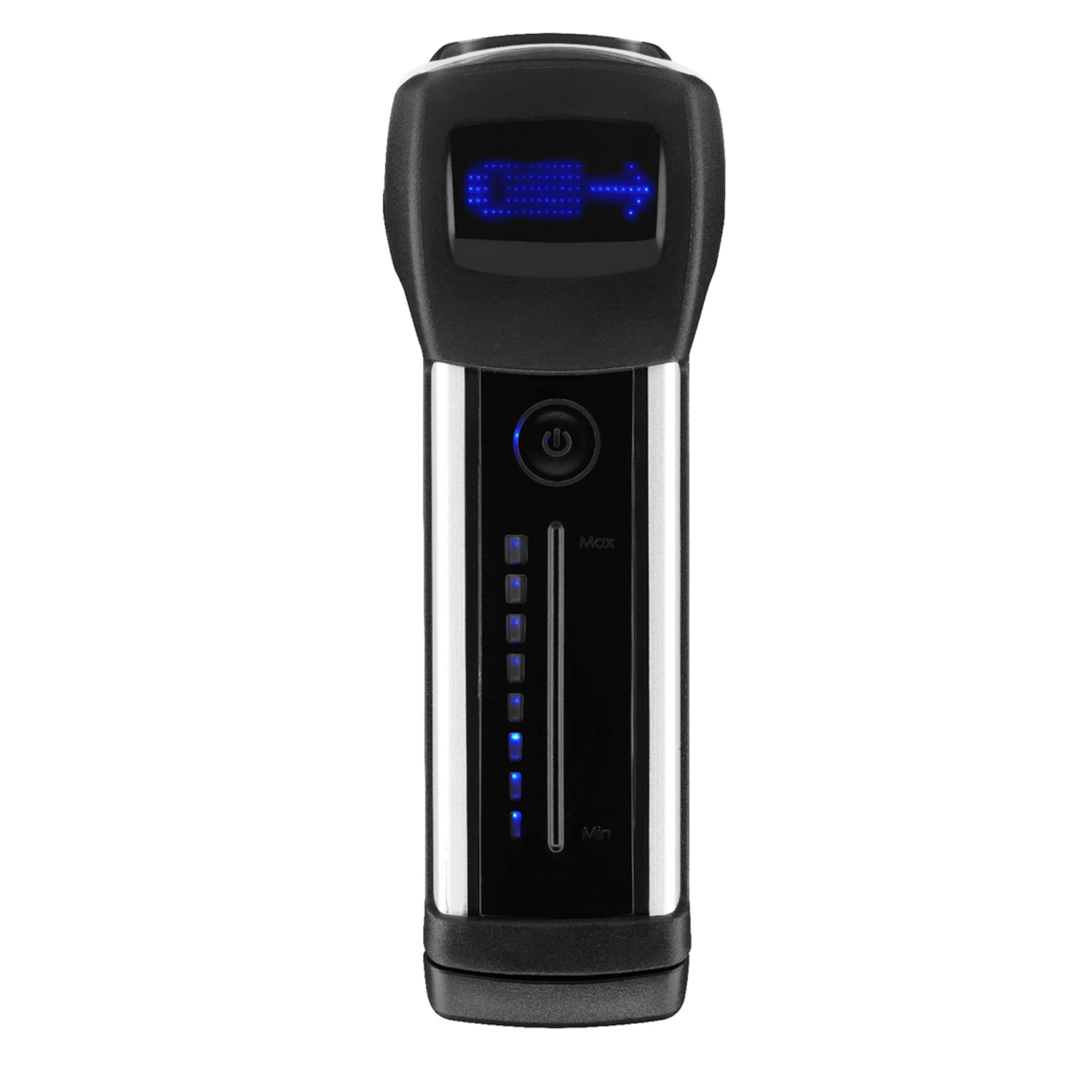 – Display gut ablesbar (Uhr, Restakku in % bzw. Restzeit). Ich mag allerdings die blauen LED nicht, einerseits die Farbe und auch bei geringster Stufe noch zu grell, irgendwas zwischen rot und grün fänd ich besser