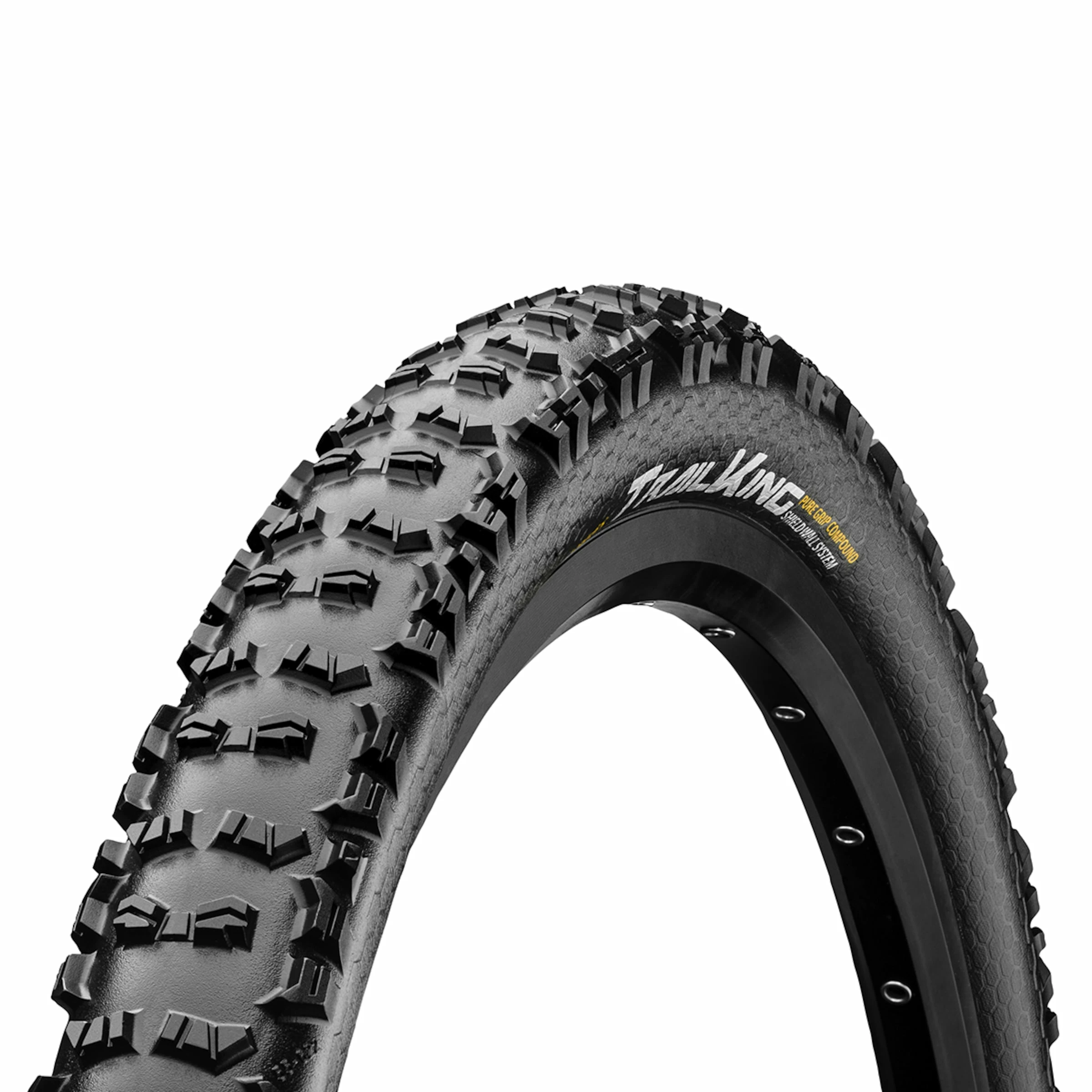 With the Trail King Performance by Continental, you will even be in full flow on demanding enduro tracks. The tubeless ready mountain bike tyre comes with a multitude of small knobs to guarantee best traction. The revised casing with ShieldWall system impresses with a low weight, high puncture resistance and first-class shock absorption. The combination of the PureGrip Compound with an aggressive, open tread design makes sure the Trail King Performance by Conti offers excellent grip on dry and loose ground. The tyre’s behaviour in corners and high braking traction significantly push the limits on extreme downhills. Tested with very high axle loads and approved without restrictions, the Trail King Performance even easily meets the requirements of modern e-MTBs.
