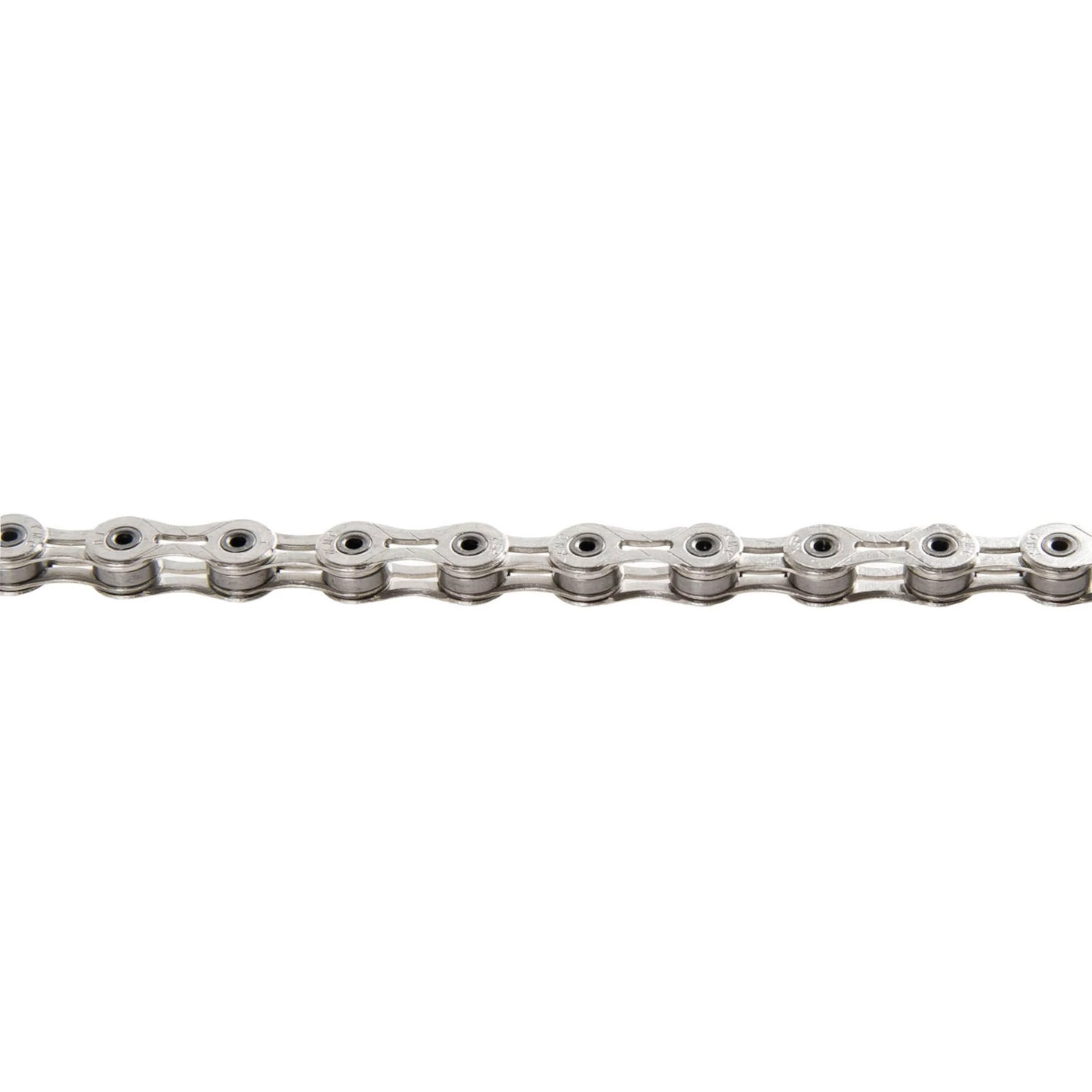 As the KMC X9SL chain is lightweight and uses less material without compromising on durability, it is the perfect choice for all 9 speed systems. The weight savings are thanks to the use of hollow pins that are riveted on the chamfered inner and outer plates to be flexible, yet also extremely tearproof. The chain’s high wear resistance results from a combination of hardened steel alloys and an abrasion-proof nickel coating. It not only protects from corrosion and reduces wear, but also improves shifting performance on and off the road – together with chamfered inner plates and the X-Bridge design.
